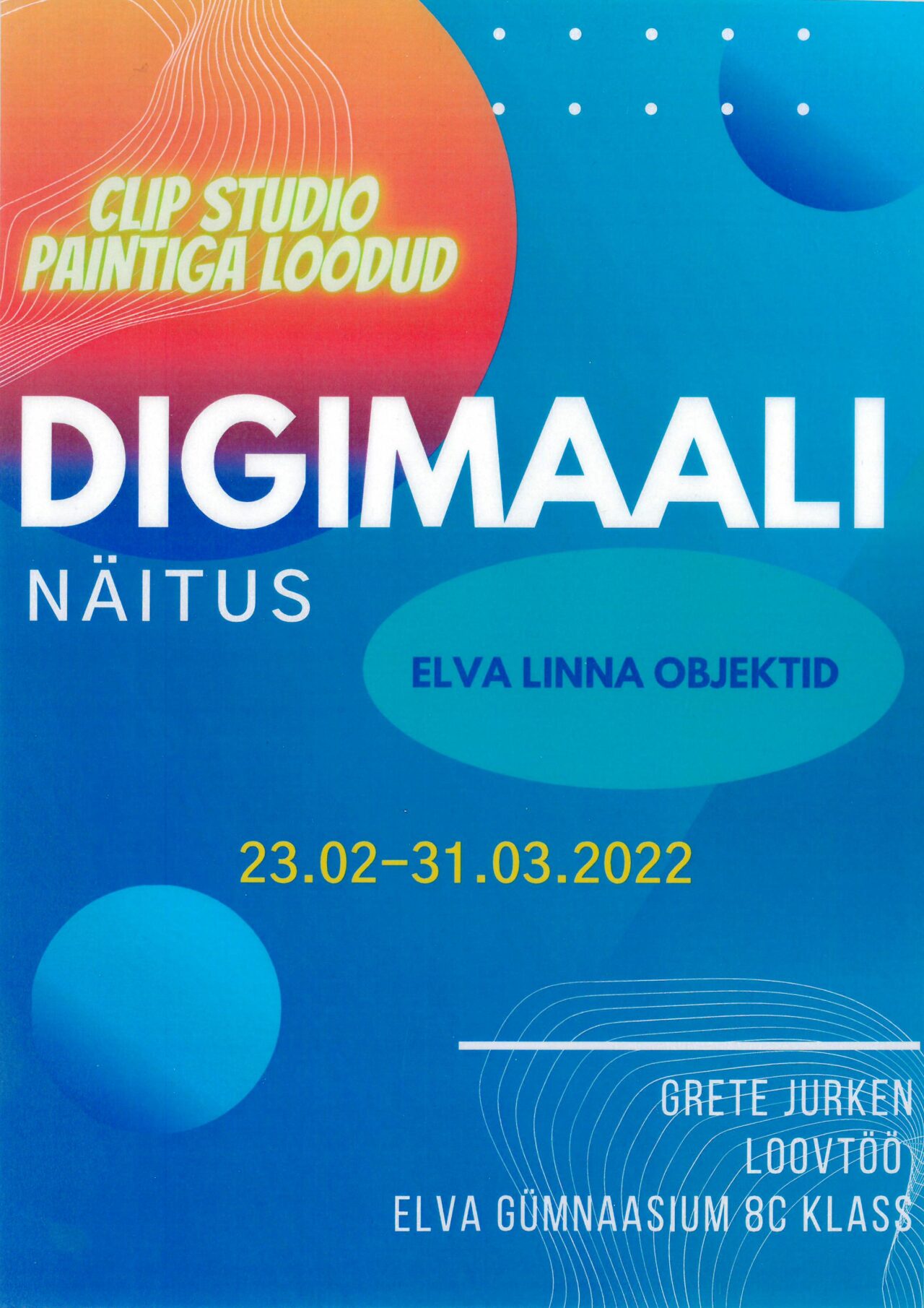Elva Linnaraamatukogu lasteosakonnas saab vaadata Elva Gümnaasiumi 8c. klassi õpilase Grete Jurkeni digimaali näitust “Elva linna objektid”.