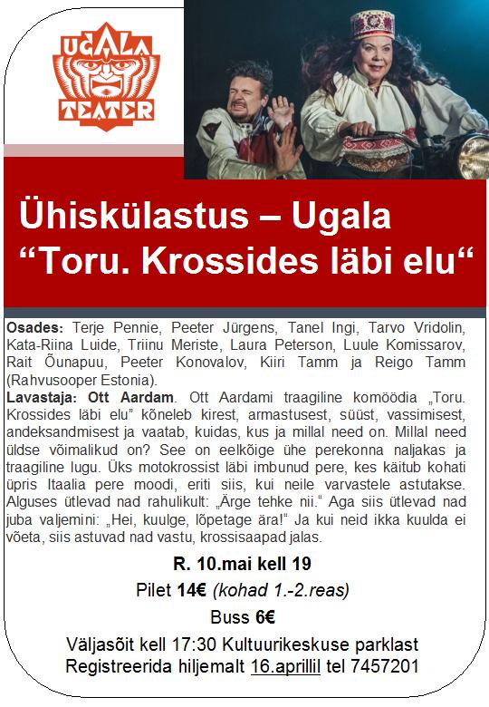Elva Kultuurikeskus on taas korraldamas ühiskülastust Viljandi Ugalasse. Sel korral läheme vaatama Ott Aardami “Toru.Krossides läbi elu”.