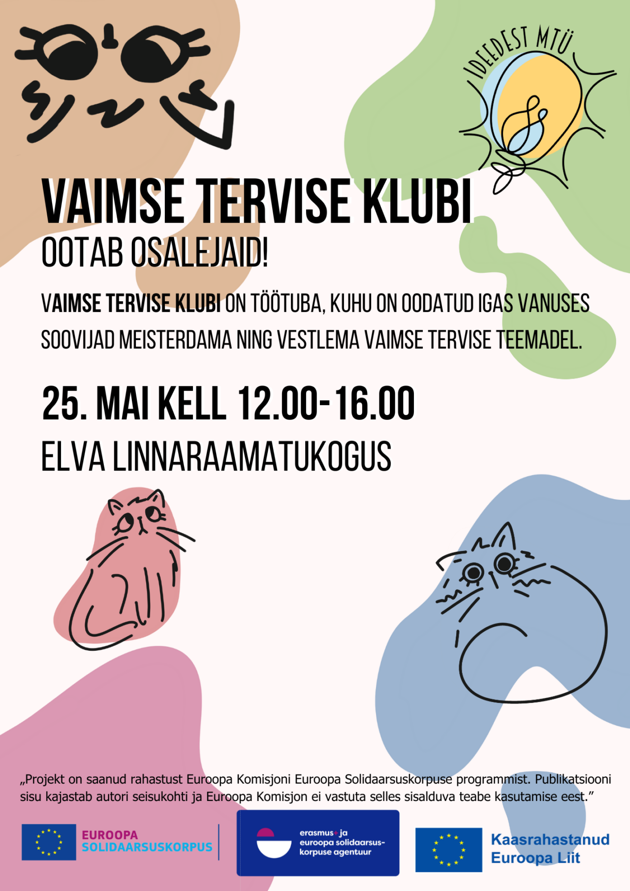 Vaimse tervise klubi on avatud töötuba, kuhu on oodatud igas vanuses soovijad meisterdama ning vestlema vaimse tervise teemadel.